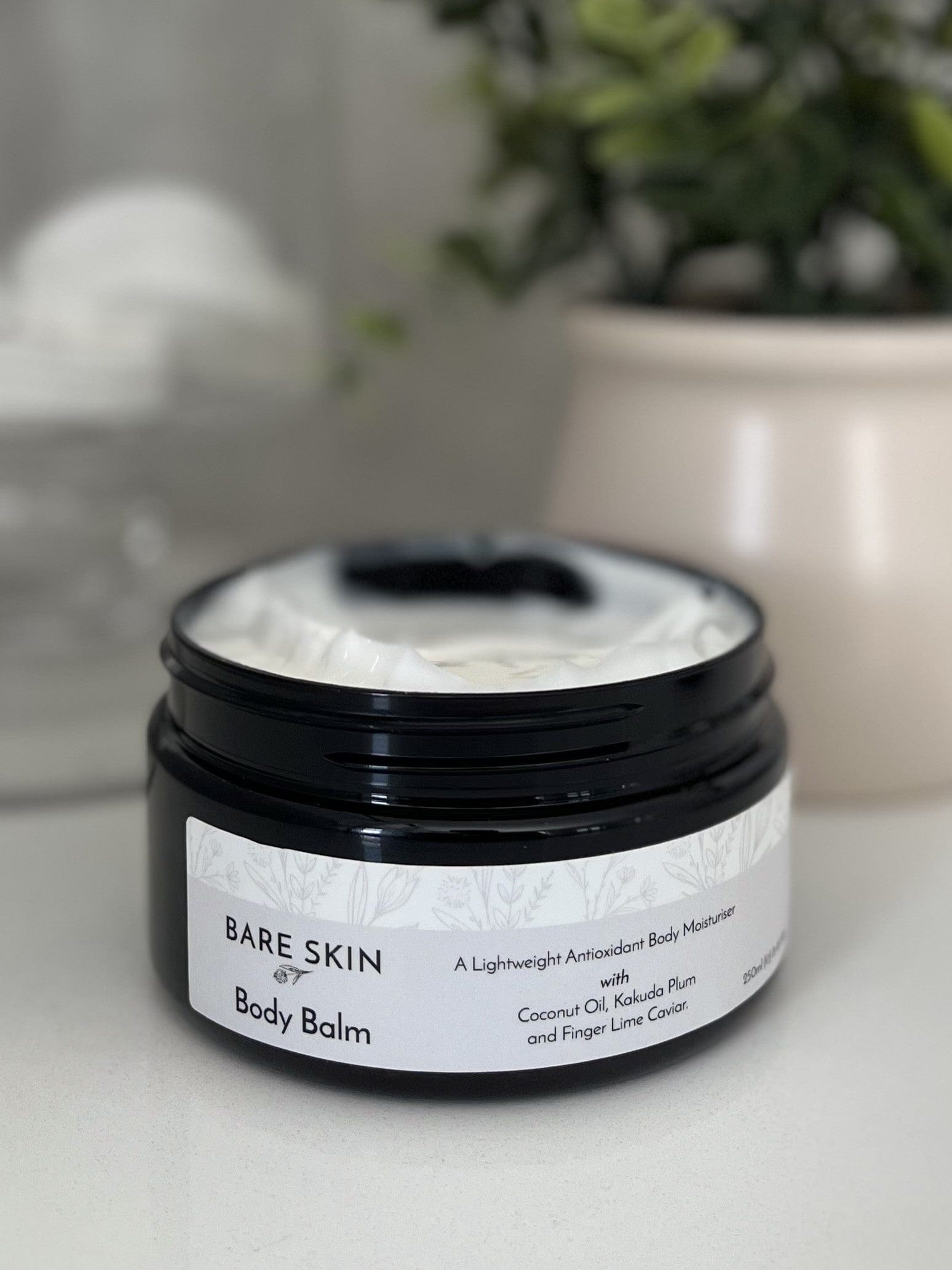 Nourish your skin daily with Bare Skin’s luxurious Body Balm, a lightweight, non-greasy formula crafted to deliver lasting hydration and antioxidant protection. Perfect for all skin types, this balm is enriched with Aloe Vera, Coconut Oil, Kakadu Plum, Desert Lime, Davidson Plum, and Hibiscus Extract to soften, smooth, and rejuvenate your skin.