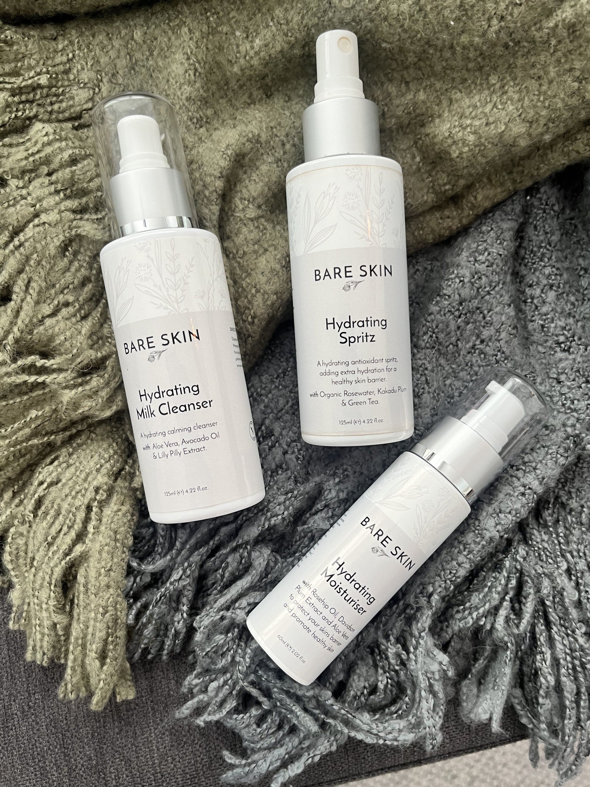 Use the Hydrating Milk Cleanser morning and evening to gently cleanse without stripping. Mist the Hydrating Spritz to soothe and calm skin. Finish with the Hydrating Moisturiser to deeply nourish, repair, and protect the barrier. Repeat daily for optimal results.